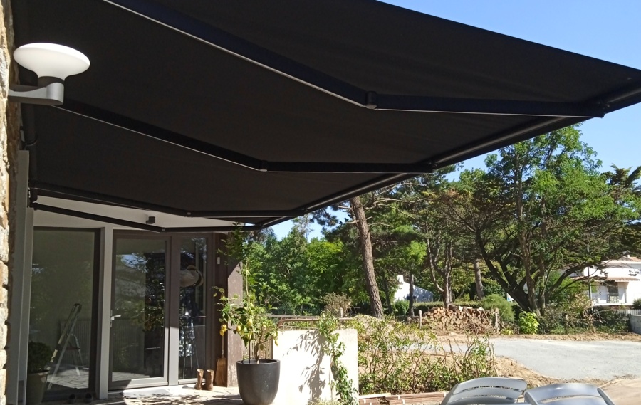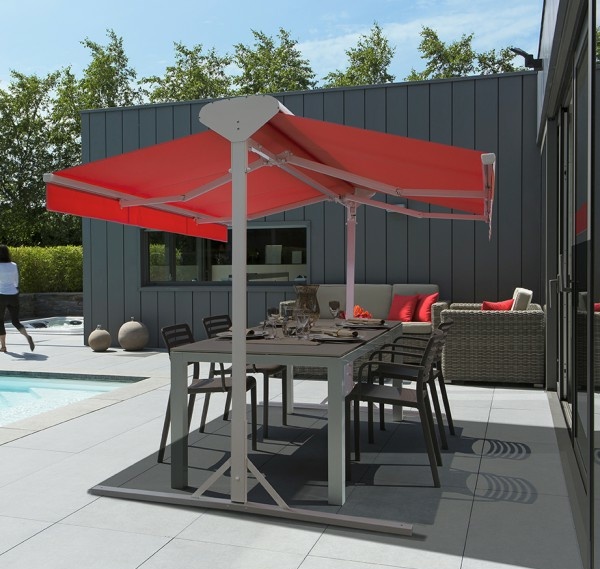 Le store à double pentes crée un lieu de convivialité extérieur à l’abri des intempéries, du vent ou de l’intensité du rayonnement solaire. Facile à installer, doté d’une armature résistante à la rouille, il peut couvrir une surface au sol de 30 m2. Mobile et accessoirisable (apport de lumière), il est idéal pour les grandes terrasses des particuliers et des cafés-hôtels-restaurants.