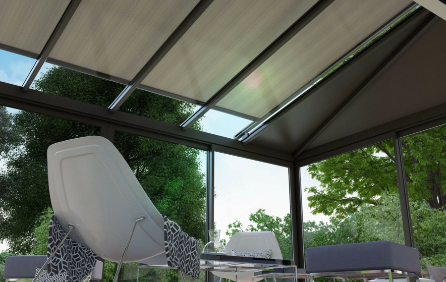 Vers l’avant, vers l’arrière, les lames peuvent dorénavant, et grâce à un moteur supplémentaire, se rétracter et réduire considérablement l’obscurcissement de la terrasse