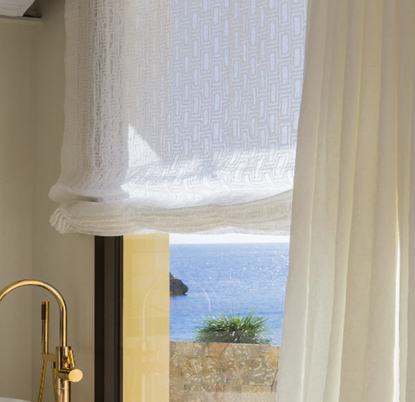 Tous les composants des stores bateaux - fils, ruban, cordon, raidisseurs, contrepoids - sont assortis à la couleur du tissu pour un effet visuel très esthétique.