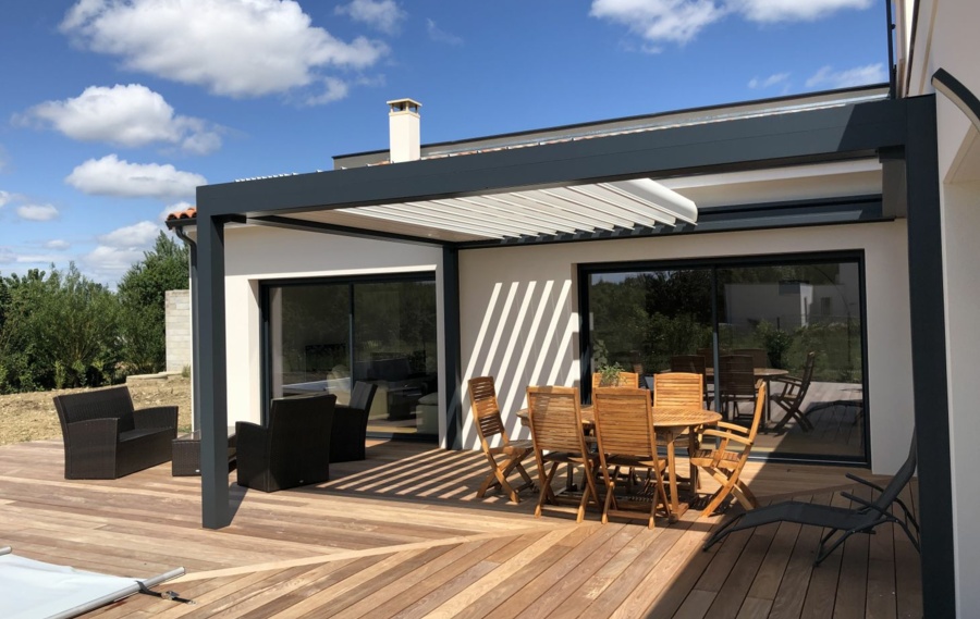 La Pergola bioclimatique est équipée de lames rétractables pour une maîtrise parfaite de l’ensoleillement.